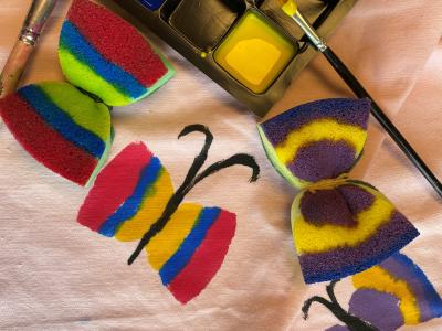 Tag din egen t-shirt, mulepose eller noget helt tredje med på biblioteket og lav flotte sommerfugle med tekstilmaling.Tårnby HovedbibliotekGratis -